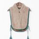 柔軟蓬鬆的毛絨面料,帶來滿滿的溫暖感。立領設計搭配拉鍊開合,方便穿脫;內裡採用帶有印度傳統風格的印花布料,並以同色系的滾邊與流蘇點綴,展現細膩巧思。無論是疊穿於襯衫、針織上衣或外套之下,都能讓柔軟的毛絨材質微微露出,成為冬日造型的亮點單品。