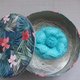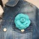 Camellia flower brooch in blue fabric - 胸針 - 羊毛 藍色