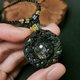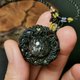 透著彩虹光的美麗黑髮晶大珠,外框設計黑色鏤空造型,包覆著彩色編織蠟線,