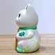 谷中堂招財貓巧妙融合了野花野草的元素🌼🍃,全身潔白的底色上點綴著淡雅的紫色、黃色小花與綠色葉片