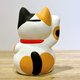 這尊日本谷中堂招財貓🐱,巧妙結合了三毛貓獨特的斑駁色彩,展現自然生動的美感與靈動可愛的樣貌🎨。