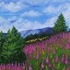 這幅畫作捕捉了我最愛的時刻:阿爾泰山寧靜晴朗的一天,山坡上覆蓋著一片生機勃勃、濃密的紫色柳蘭。我力求在畫中展現這種色彩的濃鬱,使其成為您空間中充滿活力、富有表現力的點綴。