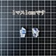 白を基調とした左右それぞれ異なるモダンな青い柄のシー陶器に、淡水パールを合わせました❁⃘*.゚