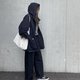 日產棉柔大口袋帽兜短外套 JP soft cotton hoodie coat - 女大衣/外套 - 棉.麻 黑色