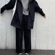 日本進口精紡棉,神奇的自帶一層絨感,非常適合春天,夏天可以當防曬衣。不厚,手感非常好,顏色是有點深深深的藍,不全是黑色,但接近於黑色!到臀部的長度~OVERSIZE版型!不挑身材~~