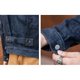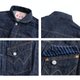 版型是經典的西部短款牛仔外套,可調節巴黎扣,上寬下窄倒三角版型,青果領設計,配布使用靛藍拔染WABASH,五金使用黃銅鈕扣,紫銅色撞釘,縫紉線會隨著布料落色,老師傅手工單件製作,因布料有限,數量也不多,希望大家喜歡。
