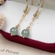 【名稱】冰綠翡翠圓珠耳環 14K包金