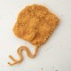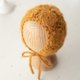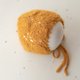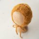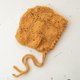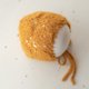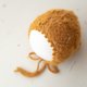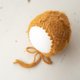 A beautiful orange hat for a newborn baby girl photo shoot, decorated with a lace collar and delicate bows