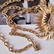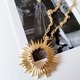 這條名為"Outer Space" 莎拉·考文垂(Sarah Coventry)1976年的作品,霧刷金紋理金色調吊墜項鍊,中間爆炸做有做凸起立體的設計真的符合名字,設計簡單又不失時尚,值得一提的是此款項鍊的特殊帶扣,有申請專利打開用推的蠻特殊的,我之前收藏時也研究了一下很有趣,有時古董飾品的設計真的是會讓人驚喜不斷也驚嘆以前設計師的巧思~