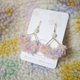 - 粉色系紗線編織而成,上面點綴貝殼圓珠,下方編織如同紗裙般的花朵