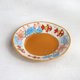 お皿の裏と縁もオレンジ色の釉を薄く塗っています。