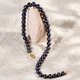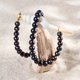 這款項鍊採用天然黑色淡水珍珠,光澤深邃而神秘,搭配金色航海扣,展現力量與高貴的融合。黑珍珠象徵智慧與堅定,航海扣寓意冒險與自由精神,整體設計如同夜空下的航程,優雅而充滿力量感。