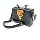 **立體松鼠花園綴玫瑰寶石水晶裝飾 黑色PU仿皮小箱子斜肩帶手袋包**