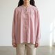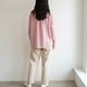 This round-neck shirt features a gathered detail at the front, adding a touch of charm, with a similar design at the back.