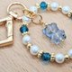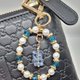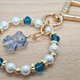 立體奧地利小熊水粉淺藍灰色搭配6mm白貝珠,藍色奧地利花珠,色彩很搶眼!!
