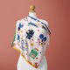 印花由設計師繪制後小批量生產,絲巾採用100%silk真絲14姆米素縐緞,手感親膚柔順的面料,透氣性極佳,印花採用環保數碼印刷印製而成,無色差,反面也有圖案,顏色略淺。