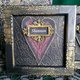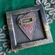 The two black wooden frames are 13*13 cm (5x5 inches) outside and 10*10 cm (approx 4x4 inches) inside. The frames are decorated with a three-dimensional pattern, which is covered with colored golden wax). Each frame contains a small black postcard. I made two textured hearts and covered them with burgundy paint and some gold paint. Then I put a name in a frame on each heart.