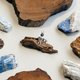 • set with rough semi-precious stone