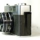 Camera is rangefinder, in other words focusing is performed by rotating the focusing disc at the lens. The aim is to unite the image in the center of viewfinder with the outer image in the viewfinder. Rangefinder base is 24 mm.