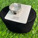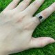 一枚開放的C形戒指,雙面圖騰的底托,以古舊的一毛錢摩根銀幣,環繞並鑲嵌著黑色松石