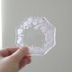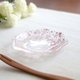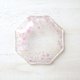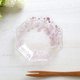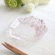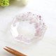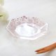 - 透明なガラスを八角形の形に整え、春に咲く色とりどりの花びらが風に舞う様子を思い浮かべながら、ピンクや白、黄色のガラス粉で模様を描いた豆皿。小さいけれど華やかな一枚です。