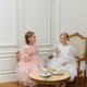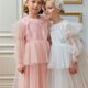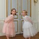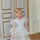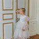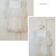 Inspired by the purity of white gypsophila, this dress is crafted from layers of beautifully soft tulle, creating a delicate and lovely silhouette that moves gracefully with every step. The voluminous double puff sleeves are filled generously with tulle, while smocking embroidery at the wrists ensures maximum comfort without using elastic bands.