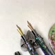 - 大鵬灣(DAPENG BAY):3952老山羊-以台灣知名特色景點命名,大器書寫特別款。採用手工製鮑魚貝殼筆管,天然紋路,五彩繽紛,絢麗奪目。筆尖使用德國山羊Bock#250(#6)玫瑰金/雙色鋼尖所研磨改造而成的玫瑰金/雙色書法鋼尖。