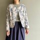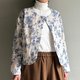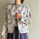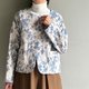 青花瓷/自然風古典藍色印花棉麻圓領短版長袖小外套