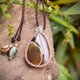 ◆このたびはブラウン、ミルクココア色の蝋引き糸を使用しマクラメ編み装飾を施しました。