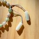 At the ends, cylindrical jade pieces add a graceful finishing touch, swaying lightly with movement.