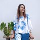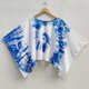 圓領淺棉靛藍紮染裁剪上衣。舒適的超大設計。棉質柔軟且易於熨燙,可愛的設計,炫酷的靛藍紮染圖案。