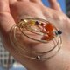 吊墜由多層圓形線條構成,承載著象徵行星的天然石珠。