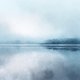 《靜湖》以極簡水色筆觸描繪雲霧初散的湖面,細緻的層次感讓光影在畫布中自然擴散,形成一種介於現實與夢境間的透明感。遠方的樹影被薄霧柔化,彷彿時間被湖面悄悄收納,只留下最純粹的寧靜。