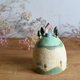 我相信這也是很多人的夢想,有一個舒服又可以放鬆的家,於是就有了這件作品的意象。就把錢儲存在置物罐裡頭吧,再用存起來的錢,買一幢漂亮的房子!希望你的願望可以快點實現哦!