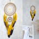 這款捕夢網是您正在尋找的禮物!它由用麻繩、珠子和羽毛包裹的木箍製成。