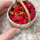Doll miniature basket with raspberries for playing with dolls, dollhouse.