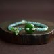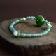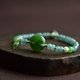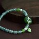 搭配手工淺綠色蠟線繩編制小葉子,搭配危地馬拉翡翠隔珠,質地冰潤無雜裂,搭配點綴碧玉圓珠和淡水珍珠,收尾搭配白玉圓珠製作珠扣。