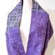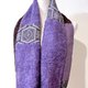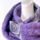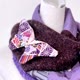 這件作品設計成脖圍,一來適喜歡簡潔有型的搭配風格,二來兼具保暖,第三更因布料本身具備的文化意涵,加上紫色代表尊貴、神聖與慈愛,因此帶著深厚的祝福意味,紫色更是二月與雙魚座的代表色。