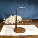 專為泰迪熊/娃娃設計的優雅展示架 ,架子結構專門為絨毛玩具或娃娃的展示而設計,提供穩固且優雅的支撐,讓您的泰迪熊或娃娃能夠「站立」或以更生動的姿勢展示,無論是放在櫥窗、書架或桌面上,都能成為眾人目光的焦點。木質圓形底座與復古金屬支架,充滿舊時光的溫潤與典雅。金屬支架可拆卸,套在娃娃身上後再插入支撐架。