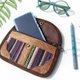 ▲可放置化妝品.手機等小物,結合皮革與棉麻及實用的設計