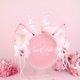 - Marshmallow Kitten Ears Features: - 2,25 inches tall kitten ears shape - luxury faux fur - crystallized with Swarovski - metal hoops - marshmello horns - removable bows with cute sweet pendants - fully wired and posable on the metal headband