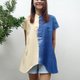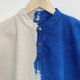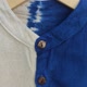 Mandarin collar sleeveless top with wood button. Comfortable size with uneven edge. The cotton is so soft and easy to iron, lovely design, cool indigo dyed 2 tone look.