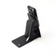 口袋背後設有可拆式按扣,打開後手機殼可自立,