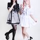 水手領設計搭配肩膀荷葉邊和泡泡袖,裝飾蕾絲點綴