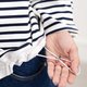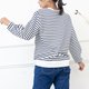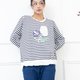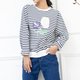 電繡花朵打摺袖上衣 / 白藍條紋 保暖舒適,秋冬皆宜