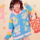 昭和甜品屋彩色水貂毛毛衣開衫外套 日系可愛