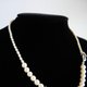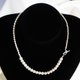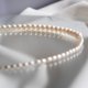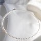 此款珍珠項鍊採用三種尺寸珍珠,以柔和漸層排列。