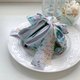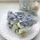 這組是Reika我特別喜歡的搭配,使用兩款綠色系夢幻花朵織帶/雪紗,搭配素色織帶和精緻蕾絲,折成自行發想的獨特蝴蝶結,最後挑選跟花邊織帶圖案類似的小花合金做裝飾,看起來浪漫又立體顯眼,走在路上不會到處撞款。