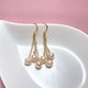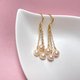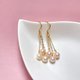紗織小姐用三枚最小直徑6.5-7mm的天然淡水珍珠垂墜在三條香檳金色的長流蘇下面,跳躍而碰撞,呼應而靈動,俏皮美好而有被愛的寓意。當你佩戴上後,一定能感受到手作的溫度和自然的光芒。