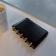 以環釦作為造型來說很有亮點, 而且也非常方便, 可以平攤在桌面上, 將需要的頁面拆卸更換次序, 幫助靈活使用。內頁一半是空白紙張、一半是格子。